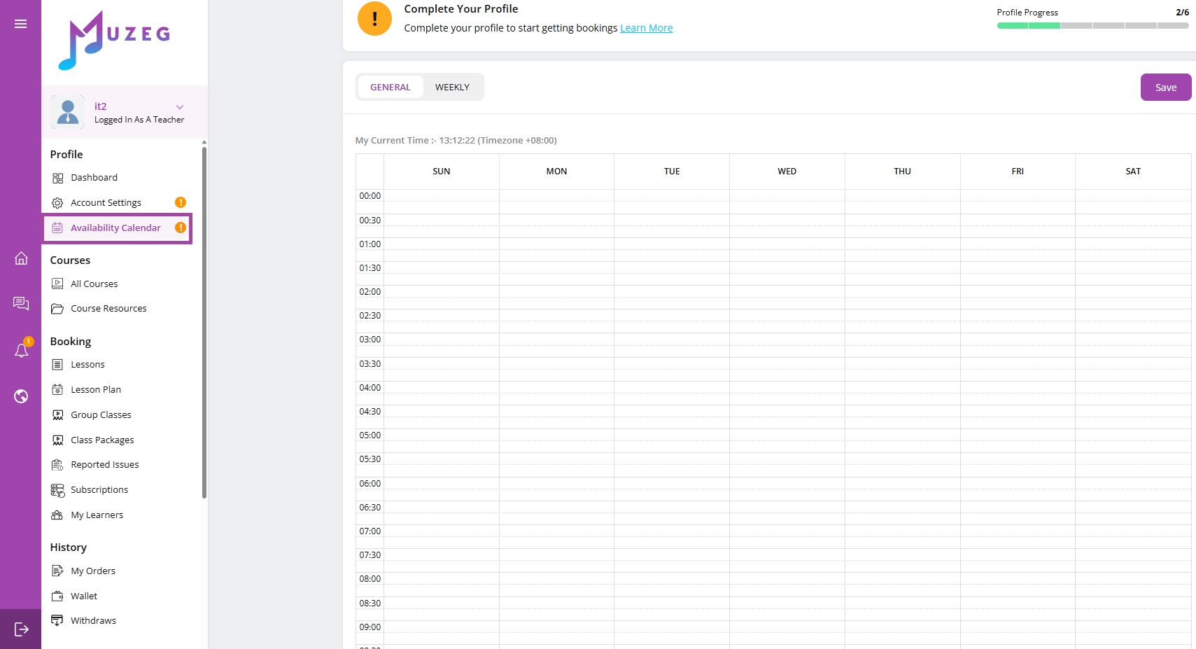 Set your available teaching hours to match your schedule.
