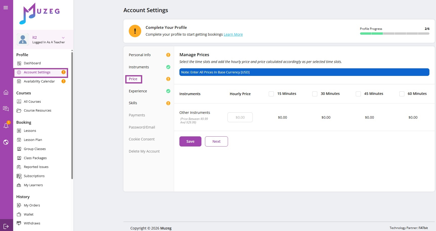 Get paid for your lessons and grow your teaching career with Muzeg™.